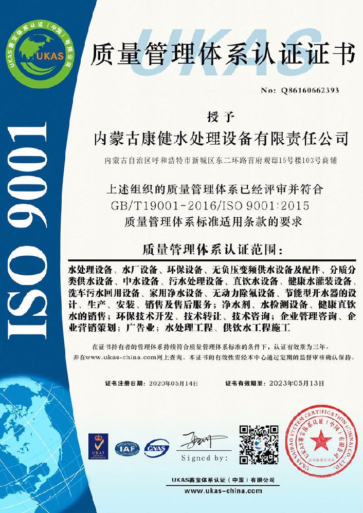 - 內(nèi)蒙古康健水處理設(shè)備有限責(zé)任公司是專業(yè)生產(chǎn)制造水處理設(shè)備、飲料設(shè)備、奶設(shè)備、殺菌設(shè)備、灌裝設(shè)備五大系列90余種配套產(chǎn)品。在反滲透、超濾、納濾、EDI模塊、等膜分離領(lǐng)域有著雄厚的技術(shù)實(shí)力,同時(shí)在水廠設(shè)計(jì)、中水回用、污水處理、分質(zhì)供水、無負(fù)壓變頻供水、鍋爐軟化水設(shè)備等領(lǐng)域有完善的技術(shù)團(tuán)隊(duì)和營銷網(wǎng)絡(luò)。公司坐落在遼闊大草原上美麗的首府——呼和浩特,是內(nèi)蒙古自治區(qū)唯一一家具有自主生產(chǎn)能力的企業(yè)。 “上善若水,水利萬物而不爭(zhēng)”康健水工自成立以來,始終堅(jiān)持“改善水質(zhì)、造福人類、服務(wù)社會(huì)、產(chǎn)業(yè)報(bào)國”的企業(yè)信條,以致力于開創(chuàng)人類綠色健康生活為己任,秉承“關(guān)愛生命、責(zé)任至上”的企業(yè)宗旨,成就了享譽(yù)四方的國內(nèi)知名水處理企業(yè)。 水是生命的源泉、工業(yè)的血液、城市的命脈。水是不可替代的寶貴資源。節(jié)約用水,關(guān)注點(diǎn)滴 為節(jié)約水資源貢獻(xiàn)一份力量, 健康飲水,利在當(dāng)代,功在千秋! 只有在這里,才能領(lǐng)會(huì)水的精髓;只有在這里,才...